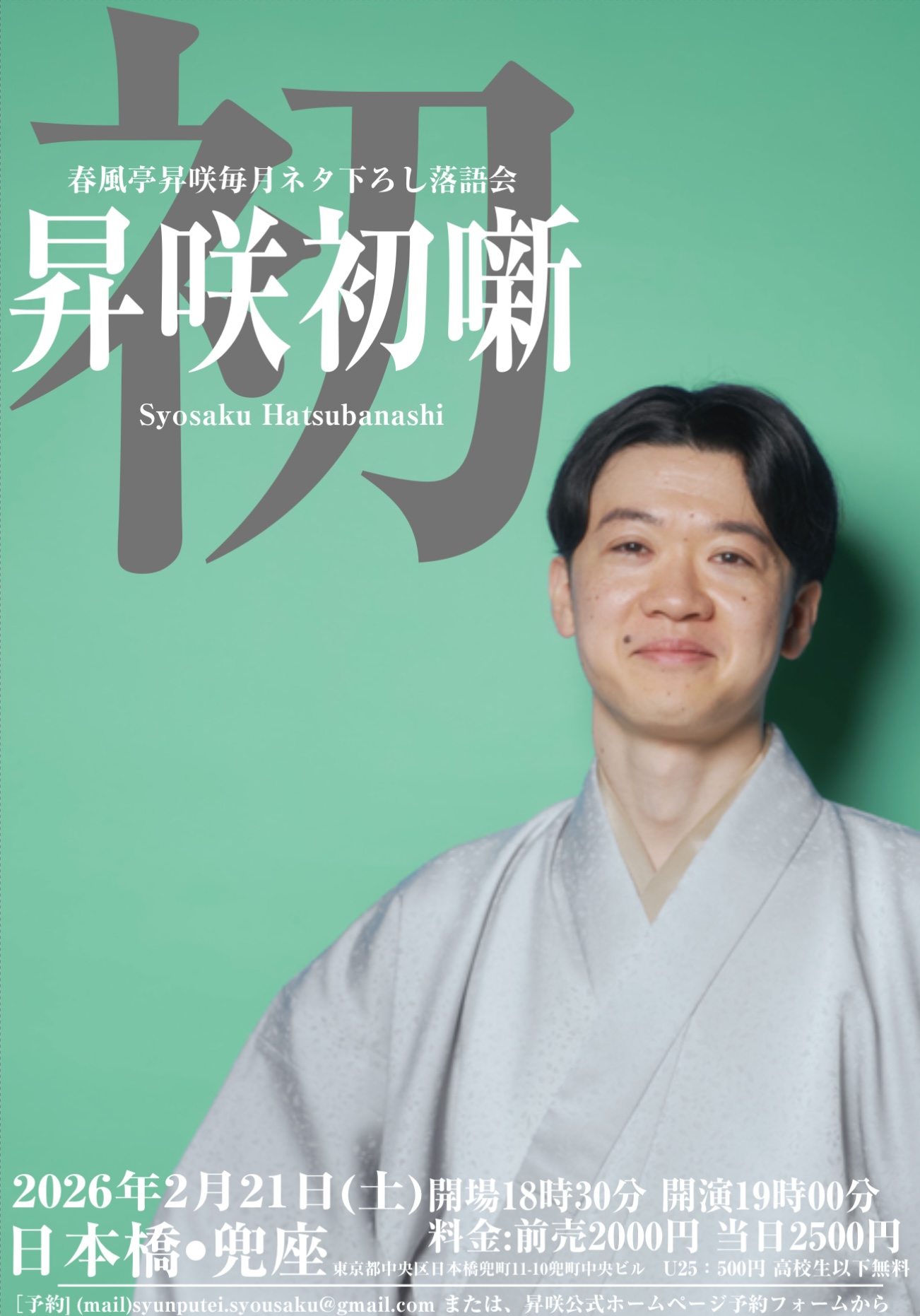 - 前座名「昇咲」として、楽屋入り。前座修行開始。